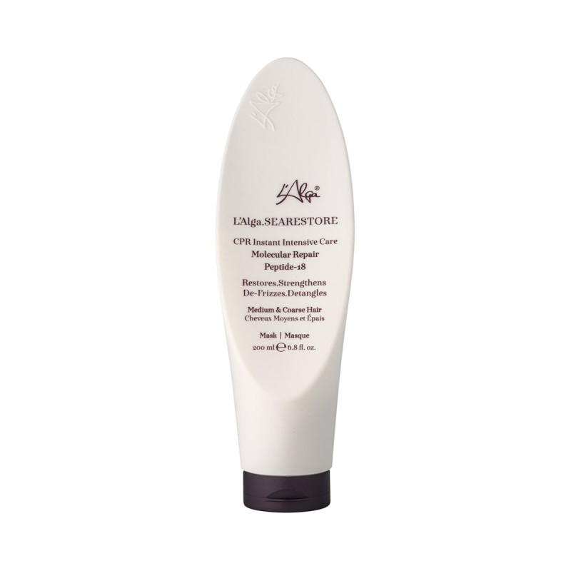 Вид,тип волосся: Сухе Властивість: УщильнюючийLʼAlga.SEARESTORE CPR Instant Intensive Care Molecular Peptide-18 Medium & Coarse Hair MaskВідновлювальна маска, розроблена спеціально для дуже пошкодженого, пухнастого, ламкого волосся. Висококонцентрований комплекс AlgaNord5™, пептиди, які стимулюють вироблення колагену, гіалуронова кислота з вологозвʼязувальними властивостями, термоактивний кунжутний протеїн та 9 кондиціонувальних речовин інтенсивно зволожують волосся та повертають йому силу. Завдяки синергетичному поєднанню інгредієнтів маска миттєво надає волоссю блиску, робить його мʼяким, слухняним та здоровим.Нанесіть на вологе, вимите шампунем волосся та прочешіть по довжині. Залиште на 3-5 хвилин, потім ретельно змийте.