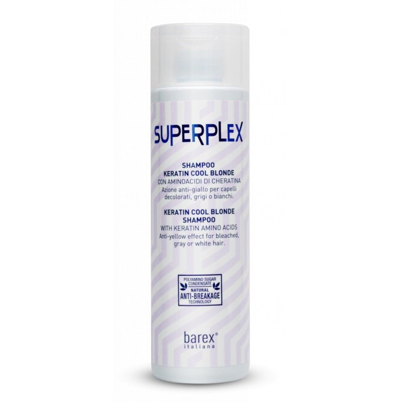 Вид,тип волосся: Фарбоване Властивість: Зволоження Тип шкіри: Для всіх типів шкіриКератиновий шампунь "Холодний блонд"Шампунь для надання холодного відтінку. Підходить як для натурального світлого, так і для освітленого волосся. Делікатно очищає, надає волоссю сили та блиску, робить його більш слухняним. Містить Polyamino Sugar Condensate, спеціальний комплекс проти ламкості волосся. Підтримує холодні відтінки блонд протягом тривалого часу.Застосування: нанесіть на вологе волосся, залиште на 5 хвилин, змийте. Використовуйте 1-2 рази на тиждень для оптимального результату.Ключові інгредієнти Суперплекс - Комплекс Polyamino Sugar Condensate – суміш протеїнів та цукрів, впливають безпосередньо на дисульфідні містки, відповідальні за міцність та еластичність волосся. Амінокислоти кератину – формують білкові ланцюжки. Діють як філер, проникаючи у структуру волосся.Barex