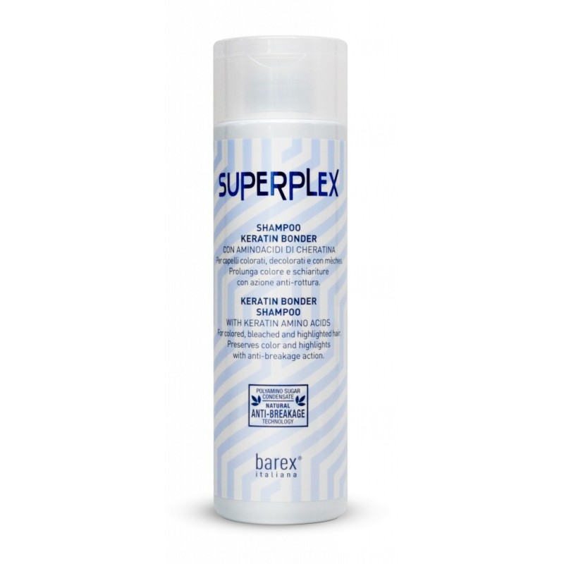 Вид,тип волосся: Фарбоване Властивість: Часте використання Тип шкіри: Для всіх типів шкіриКератиновий шампуньВідновлює фарбоване та пошкоджене волосся, подовжує стійкість фарбування або завивки. Кератин і комплекс Polyamino Sugar Condensate проникають у структуру волосся, помʼякшуючи його та запобігаючи ламкості. Сприяє відновленню дисульфідних звʼязків. Волосся стає еластичним і блискучим.Застосування: нанесіть на вологе волосся, помасажуйте та промийте. Для глибокої дії залиште на 1-2 хвилини. Для оптимального результату використовуйте разом із кондиціонером Superplex.Ключові інгредієнти Суперплекс - Комплекс Polyamino Sugar Condensate – суміш протеїнів та цукрів, впливають безпосередньо на дисульфідні містки, відповідальні за міцність та еластичність волосся. Амінокислоти кератину – формують білкові ланцюжки. Діють як філер, проникаючи у структуру волосся.
